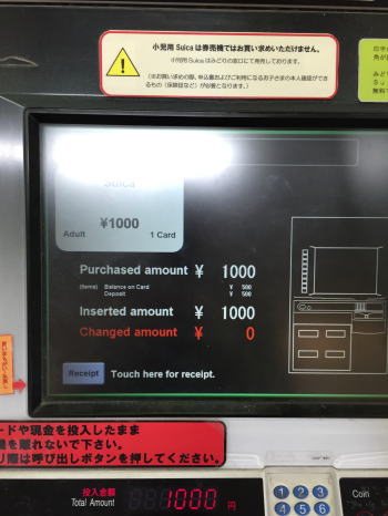 6. Insert your amount for payment on the commuter pass dispenser. (In my case, inserted 1000 yen.)