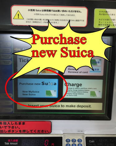 3. Push "Purchase new Suica" on the commuter pass dispenser.