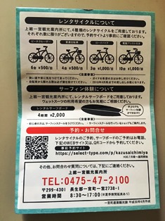 ここで自転車やサーフボードを借りることが出来ます。トイレ、コインロッカー、フリーWi-Fi有り。